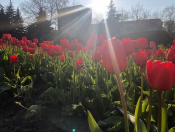 Отметим, также красивые аллеи тюльпанов можно встретить у КГМТУ, гостиницы завода «Залив», под окнами местных жителей. Также много тюльпанов цветет на кольце на КУОРе.