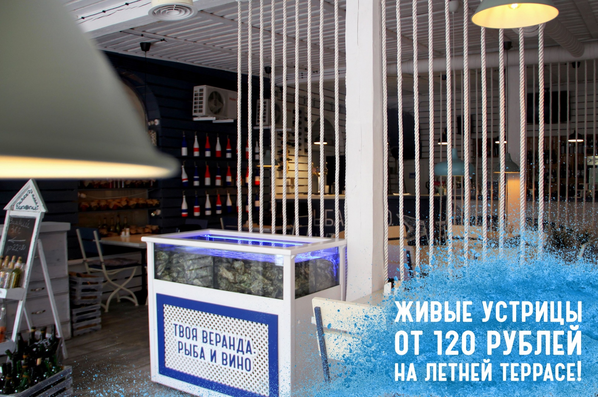 Теперь Вы снова можете насладиться своим отдыхом на открытой террасе Твоя Веранда. Рыба и вино в компании любимого бокала белого сухого и свежих устриц, которые выберете сами прямо из нашего аквариума, а подадим мы их с долькой свежего лимона или с соусом на Ваш выбор! Да, и поделимся еще одной супер-новостью, мы обновили наше предложение «Устрицы и моллюски», рекомендуем заглянуть ;)