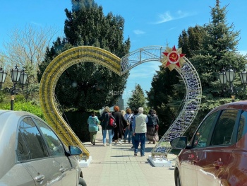 В Керчи в сквере Славы появилась новая инсталляция. Вход в сквер украсили светящейся аркой в форме сердца с Георгиевской лентой и Орденом Отечественной войны, - передает Керчь.ФМ.
