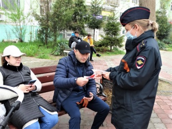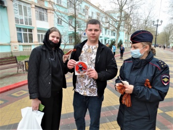 В преддверии празднования Дня Великой Победы сотрудники керченской полиции совместно с воспитанниками Детской школы искусств имени Р.В. Сердюка присоединились к Всероссийской акции «Георгиевская ленточка». Выйдя на центральную улицу города, правоохранители и ребята дарили ленточки. Об этом сообщает пресс-служба УМВД России по г. Керчи, - передает Керчь.ФМ.