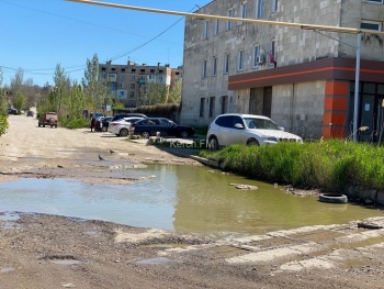 После дождя яма наполнилась водой и водители с опаской проезжают данный участок дороги.