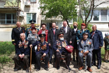 Вот и сегодняшний праздничный день ветеран в приподнятом настроении, в парадном мундире, с орденами и медалями, принимал поздравления и персональный парад у своего дома.