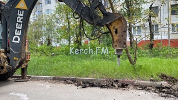 В Керчи начали работы по ремонту дороги на улице Андрея Первозванного. Рабочие с помощью спецтехники выкорчевывают бордюры, - передает Керчь.ФМ.