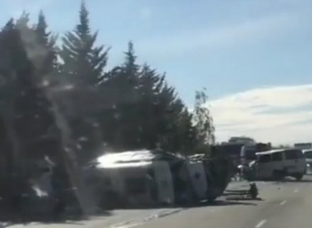 Автомобиль «скорой помощи» перевернулся после столкновения на объездной дороге в Симферополе. Об этом Крыминформу сообщил директор Крымского республиканского центра медицины катастроф и скорой медицинской помощи Сергей Олефиренко, - передает Керчь.ФМ.