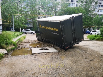 В Керчи «Деловые линии» легли на брюхо в коммунальной яме . Скандал намечается грандиозный, так как о состоянии дорог в районе Буденного, 20, 28 не писал разве что ленивый, - передает Керчь.ФМ.