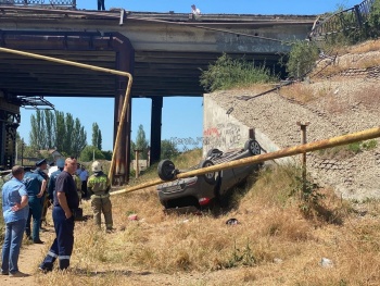 В ведомстве напомнили, что после столкновения оба автомобиля вылетели с проезжей части, сбили ограждение и упали с мостового сооружения.