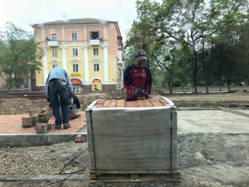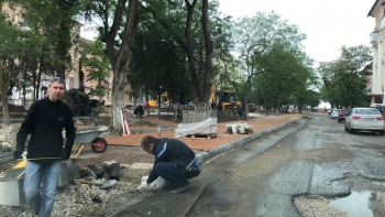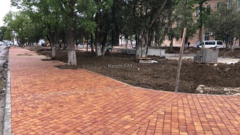 Активные работы начались на Бульваре пионеров в Керчи. Так, с утра 3 июня здесь пыльно: рабочие укладывают плитку на тротуарах, - передает Керчь.ФМ.