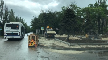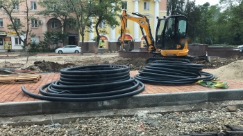 С помощью техники ровняют территорию у новых фонтанов. Также подводят коммуникации. Ограждения здесь убрали полностью.