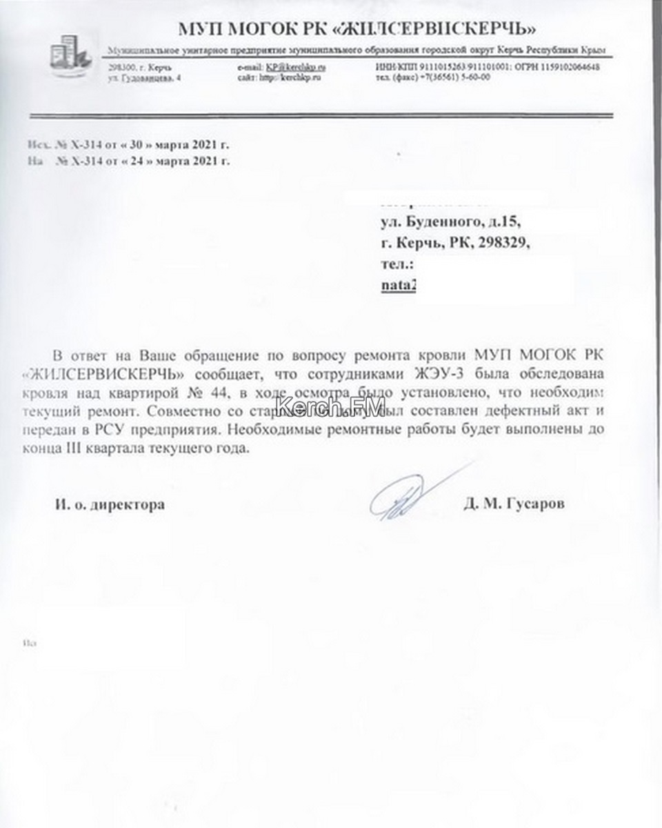 В редакцию Керчь.ФМ обратились жители дома по Буденного, 15. Ночной дождь затопил не только пятый, но и четвертый этажи в подъезде. В квартирах у людей повздувались обои. Также дымились провода в щитке.
