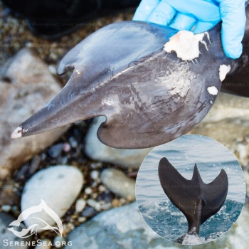У берегов Алушты местные жители нашли мёртвого новорожденного дельфина-афалину со странным хвостом похожим на трезубец. Как сообщили КИА в центре реабилитации дельфинов «Безмятежное море», аналогичный дельфин был найден у крымского побережья в 2019 году, - передает Керчь.ФМ.