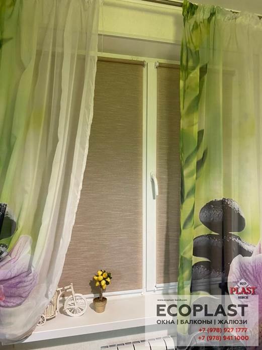 Рулонные шторы не занимают места на подоконнике, имеют пылеотталкивающее покрытие и совершенно просты в уходе!