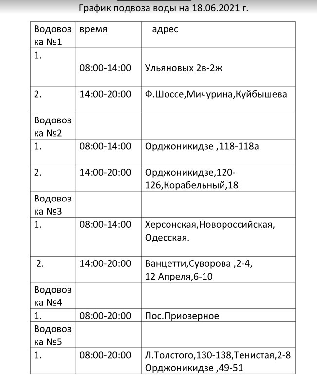 Водоканал Керчи сообщает график подвоза воды на 18 июня, - передает Керчь.ФМ.