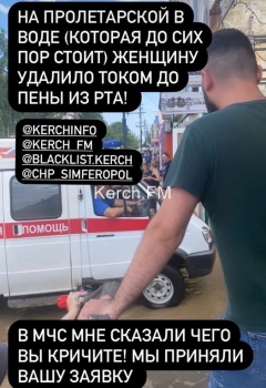 В Керчи 19 июня на улице Пролетарской женщину ударило током. В данном месте еще не ушла вода. Как Керчь.ФМ сообщили очевидцы, когда женщина шла по поддонам ее затрясло.