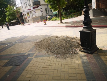 На Ленина в Керчи похоронили мусор. Аккуратненький такой холмик растет посреди улицы уже пятый день. Прохожие используют его в качестве мегапепельницы. Фото в редакцию Керчь.ФМ прислали постоянные читатели.