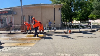 Кроме этого, перекрыто движение на улице Козлова. На Карла Маркса и Самойленко люди убирают тротуары, восстанавливают разрушенные пешеходные дорожки, красят вазоны и моют люки. На Пирогова рабочие моют пешеходные переходы и бордюры.