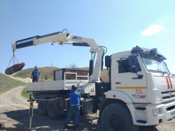 Всего к пиротехническим работам по обезвреживанию взрывоопасных предметов от МЧС России было привлечено 5 человек личного состава и 2 единицы техники.