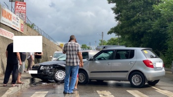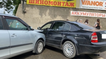 В Керчи 6 июля на улице Кокорина, перед светофором произошла авария. Столкнулись два автомобиля марки «Skoda».
