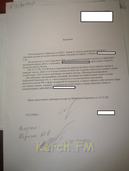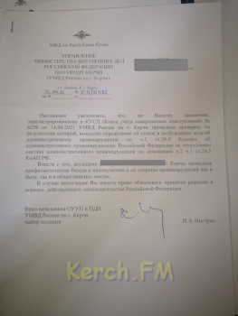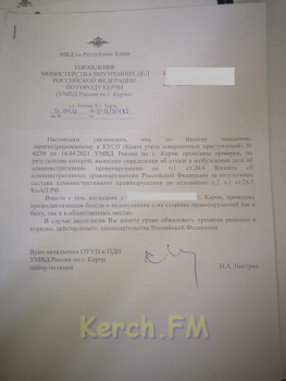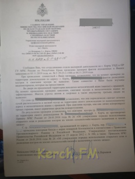 На основании вышеизложенного, привлечь к административной ответственности лиц, указанных в Вашем обращении, основываясь лишь на предоставленной видеозаписи, не представляется возможным, так как является незаконным и необоснованным, а обстоятельства имеющие значение для правильного разрешения административного дела - не установлены», - ответил на очередное заявление начальник ОНД по г. Керчь подполковник Пермяков.