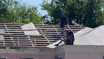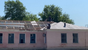 В Керчи начали крыть крышу бывшей лаборатории, расположенной на улице Горбульского, 1. Ранее, вдоль всего здания спилили тополя, - передает Керчь.ФМ.