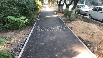 Последнее, что делают рабочие -вымащивают пешеходные дорожки вдоль проезжей части. Здесь ставят бордюры и засыпают дорожку. В районе остановки «Волна» с одной стороны заасфальтировали небольшой участок пешеходной дорожки.