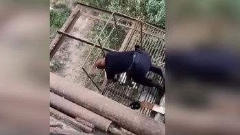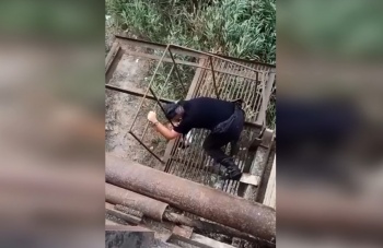 Несмотря на то, что заплаканная женщина оказывала сопротивление, сотрудники полиции успокоили ее, подняли на мост и отвели в безопасное место.