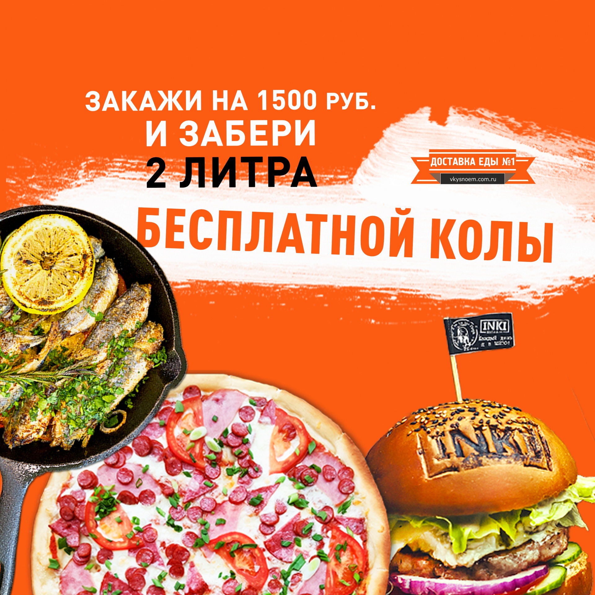 Заказывай на сумму 1 500 рублей и забирай 2л бесплатной колы!