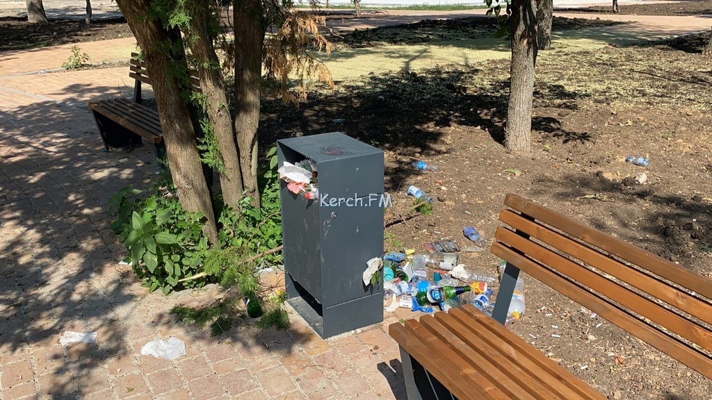 Но вот весь новый и красивый вид портят отдыхающие, которые раскидывают пустые бутылки по всему парку.