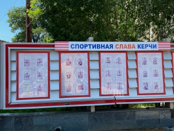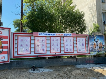 Керчане возмущены состоянием стенда «Спортивная слава Керчи» у здания администрации