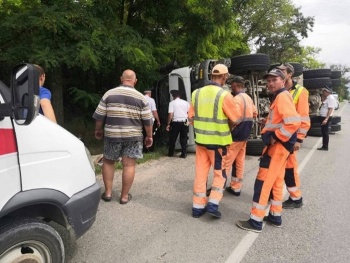 По прибытии спасателей стало известно, что водитель грузового автомобиля «Renault», во время движения допустил съезд транспортного средства за пределы дорожного полотна с дальнейшим опрокидыванием в кювет.