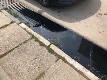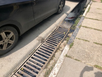 Канализация по улице уже не течет, никаких видимых порывов в этом районе нет. Тем не менее, в ливневке стоит темная жидкость, которая очень сильно воняет и никуда не сходит.