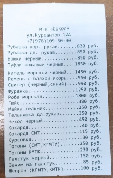 В магазине «Сокол» имеется в продаже форма для студентов морских учреждений