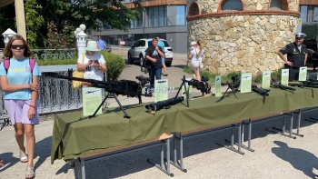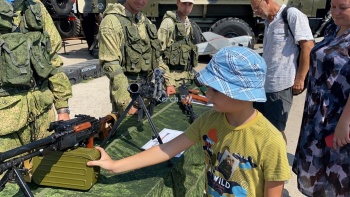 Также рядом выставили оружие, детям предлагают подержать его в руках и даже произвести выстрел.