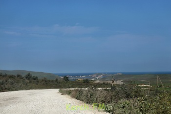 Обратную дорогу от Чокрака до «Космоса» выбрали вдоль горы по степи. Она оказалась более автомобилепригодная. Эта же дорога идет прямо от самой чокракской грязи, но она там сейчас залита лужей по бедро глубиной. Не проедет даже УАЗик. Не считая пары мест с колеей дорога вдоль горы и пологий подъем оказались более чем пригодными для возврата через дачников к дороге обратно в Керчь.