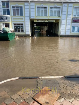 Предприниматели с 5 утра звонили во все экстренные службы, но вода продолжала прибывать. Сейчас полностью затоплены проезжая часть, частично тротуар. Еще несколько сантиметров и вода будет заливать в помещения.