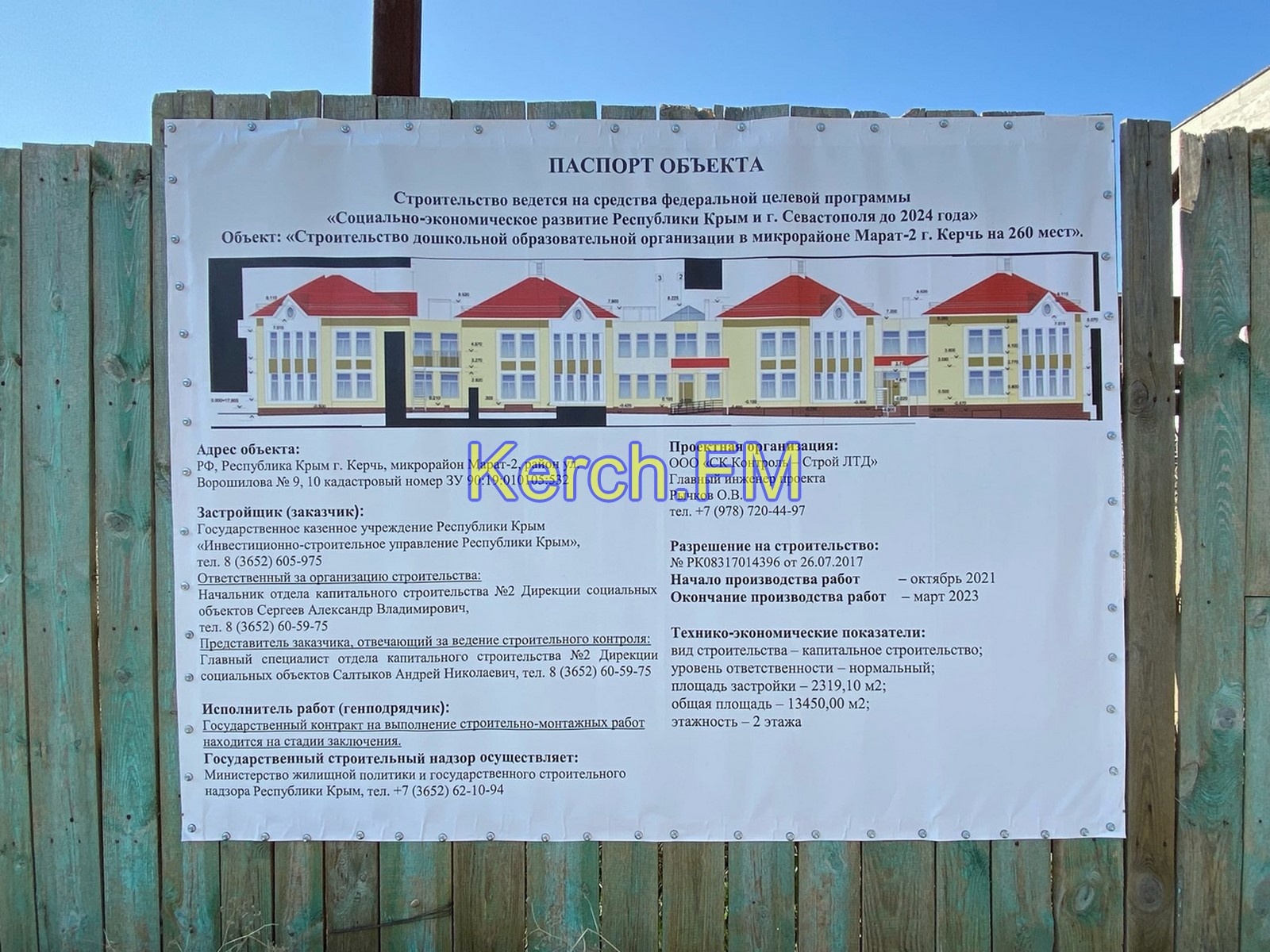 На территории заброшенного детского садика на Марат-2, строительство которого обещали возобновить в 2021 году, обновился паспорт объекта, — передает Керчь.ФМ.