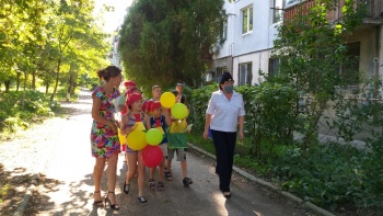В ходе экскурсии ребята делали остановки и вместе с инспектором ГИБДД разбирали правила поведения в той или иной дорожной ситуации. Таким образом ребята узнали, что во дворе своего дома необходимо быть предельно внимательными: нельзя выбегать из-за угла, кустов или припаркованного транспорта. Далее участники акции подошли к месту, где тротуар пересекает въезд во двор, и для того чтобы заметить выезжающий со двора автомобиль, нужно остановиться и убедиться, что машин нет. Следующей остановкой был нерегулируемый пешеходный переход. «Ребята, помните! Прежде чем начать переход проезжей части, необходимо остановиться, чтобы дать возможность водителю вас вовремя увидеть. Посмотрите по сторонам и убедитесь, что все машины вас пропускают!» - предостерегла детей Елена Ковалева.