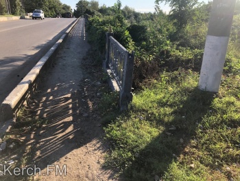 В Керчи на Партизанском мосту пропадают секции ограждения. Об этом Керчь.ФМ сообщили постоянные читатели. Керчане говорят, что раньше дырка была в одном месте, а теперь в нескольких, и они становятся все шире.