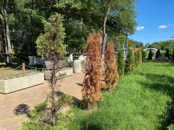 Часть туй высохла полностью, другая, лишь продолжает подсыхать.