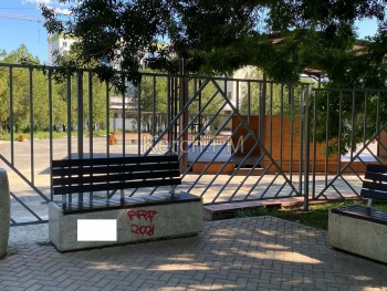 Продолжаем путь к Дворцу пионеров, и нас встречает лавка, исписанная неприличными словами.