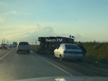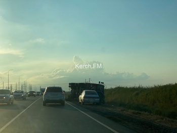 Перед автоподходами к Крымскому мосту 12 сентября произошла авария. Грузового автомобиля не справился с управлением и выехал за пределы проезжей, в результате грузовик перевернулся, - передает Керчь.ФМ.