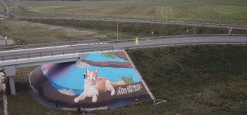 Трассу «Таврида» украсили граффити с котом Мостиком размером с дом