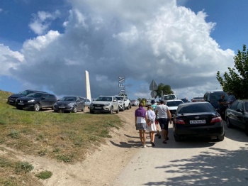 Доехать как можно ближе к Обелиску не получится - обочины заставлены машинами, собираются пробки.