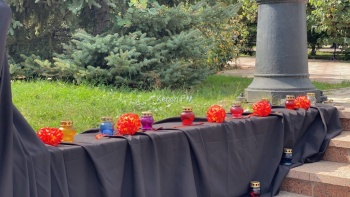 Керчане могут выразить свои соболезнования и принести цветы и свечи к мемориалу.