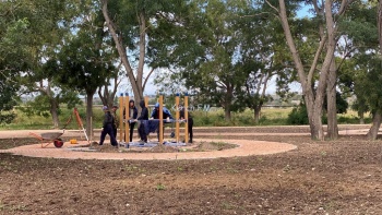 Сегодня, 24 сентября, рабочие проводили в парке работы по монтажу новых беседок. Также подготавливали дорогу к асфальтировке.