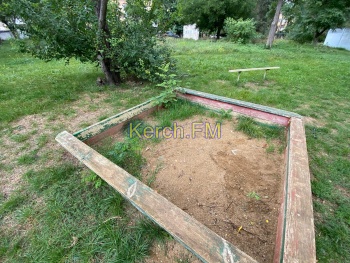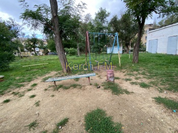 Рядом с разрушающимися домами на улице Славы, а также дорогой, о которой Керчь.ФМ делал материал летом, детская площадка также заразилась «разрухой». Если бы сейчас было тепло, то для клещей здесь - настоящий рай, ведь трава тут везде. Качели можно использовать для съемки хорроров, да и сама детская площадка в целом годится под это дело.