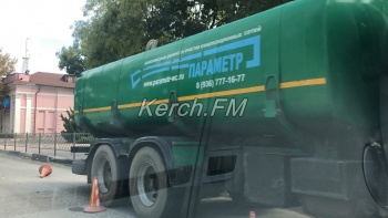 Техника ограждена конусами. Напомним, здесь очищают трубы, в которые впадают ливневые воды и река Булганак. Они были заилены почти на70 процентов. Это место во время двух потопов в Керчи сильно затопило.