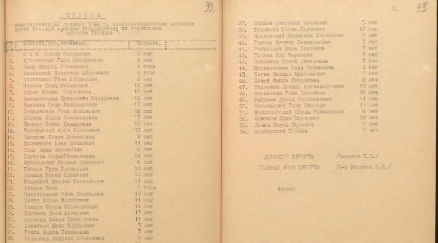 ФСБ опубликовала часть материалов рассекреченного уголовного дела в отношении главного врача курорта «Теберда», который находился в Карачаевской Автономной области Ставропольского края, помогавшего нацистам в уничтожении детей еврейской национальности. Как сообщила пресс-служба УФСБ по Республике Крым и Севастополю, во время Великой Отечественной войны на курорт эвакуировали больных детей из ряда санаториев СССР, в том числе расположенных в Крыму.