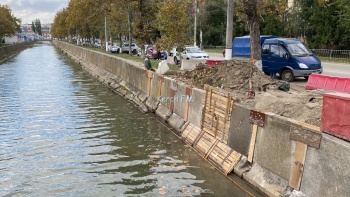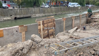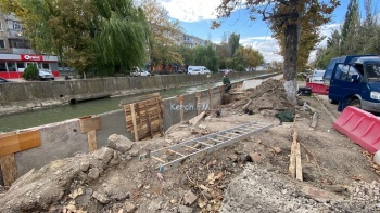 В Керчи на улице Еременко бригада восстанавливает разрушенный во время июльского потопа парапет. Специалисты восстановили бетонное ограждение, вскоре примутся за пешеходную часть. Место работ оградили, - передает Керчь.ФМ.