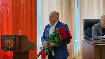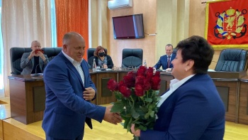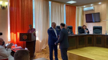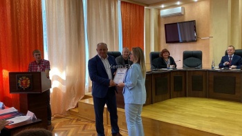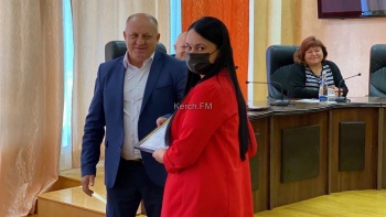 Перед началом сессии еще врио главы администрации Керчи Брусаков вручил благодарности Главы Крыма двум своим замам Екатерине Федоренко и Юлии Атамалян, а также благодарность главы Администрации Керчи вручил Сергею Пензеву.