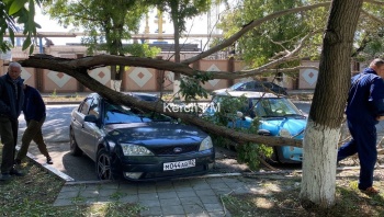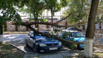 В Керчи 1 октября на улице Кирова на два автомобиля упала ветка дерева. На одном из автомобилей имеются значительные повреждения. Стоит отметить, что транспортные средства стоят на парковке, - передает Керчь.ФМ.